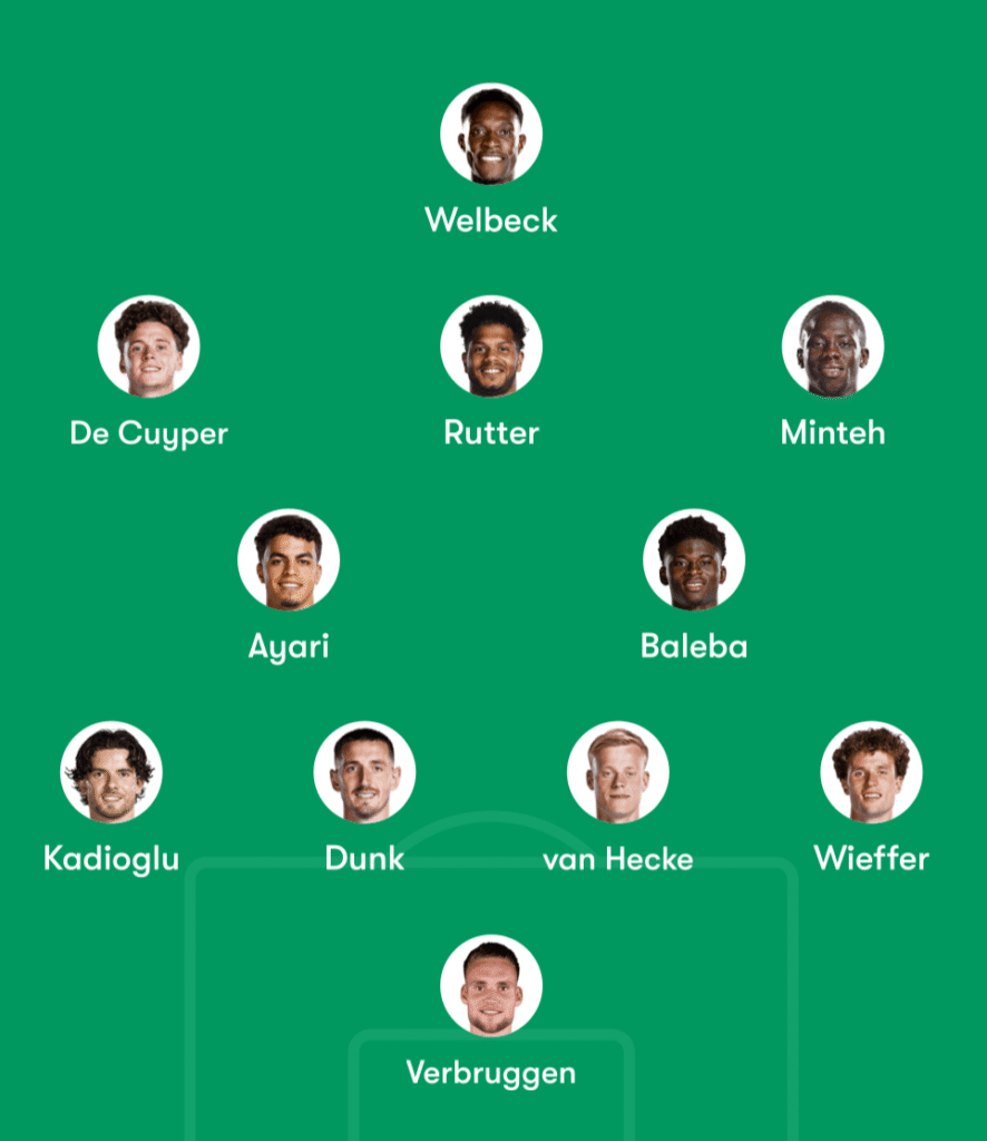 De Cuyper and Ferdi Kadıoğlu played extremely well down the left side last time out, with De Cuyper occupying the left-wing role. With Mitoma likely to remain unavailable, I expect Hürzeler to once again deploy De Cuyper and Kadıoğlu in tandem.