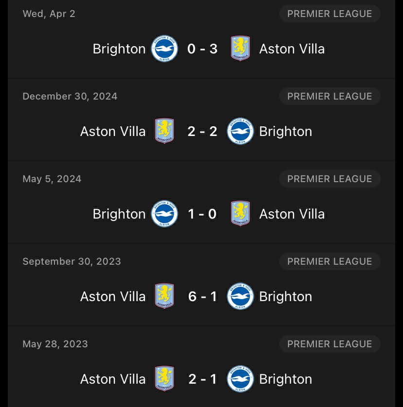 Both sides will find opportunities in this match, and the winner will be determined by whoever capitalizes on those chances. If I had to pick a scoreline, I would predict a 2-1 win for Brighton. Brighton have been strong at home, while Villa have struggled at times away. Villa tend to concede dangerous chances from wide attacks, which is exactly where Brighton thrive, giving Brighton a tactical edge heading into this one – and it will be up to Unai Emery to solve that puzzle.