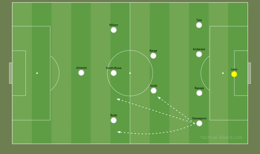 More often than not, Sessegnon does not provide traditional width. Instead, he inverts into the front line or midfield line, allowing Alex Iwobi to push forward.