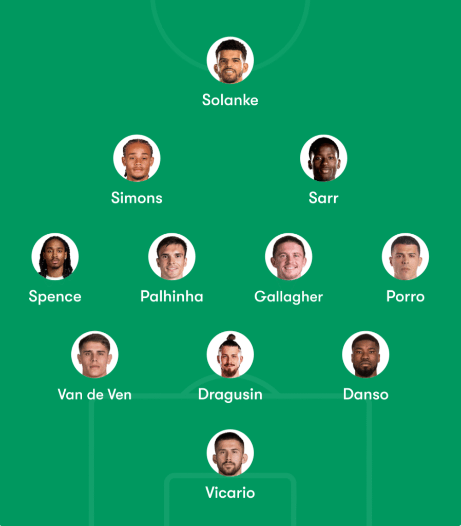Leading the line could be any one of Richarlison, Dominic Solanke, or Randal Kolo Muani.