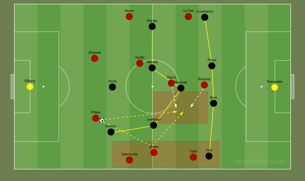 Newcastle frequently utilise long diagonal switches during both build-up and progression phases. If they are able to draw Sunderland toward one side of the pitch, opportunities may open up to exploit the far side with quick switches to wingers or advancing fullbacks.