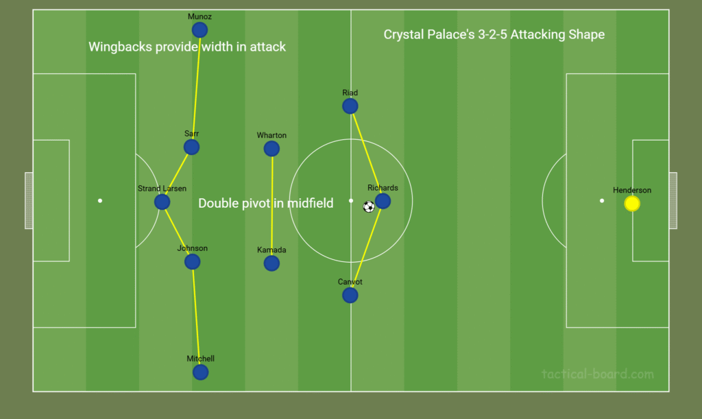 On paper, Crystal Palace operate in a 3-4-2-1 formation. Their wingbacks are tasked with recovering quickly when out of possession and providing width high up the pitch when Palace look to attack.